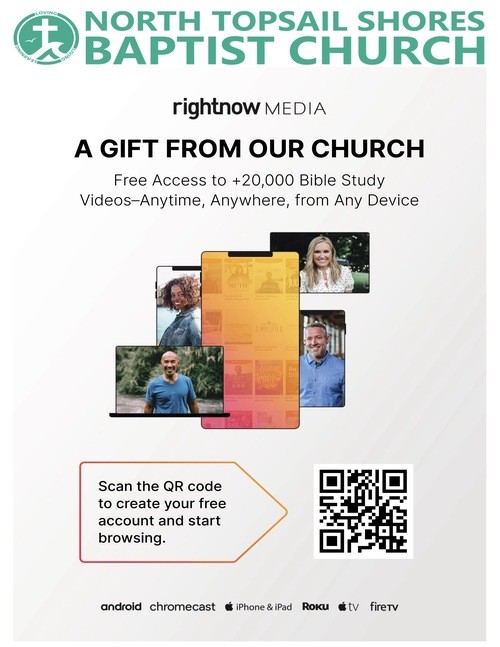 Right Now Media is an Online Media Library and Discipleship tool that we subscribe to and we would be happy to give you a subscription as well. You will find it filled with numerous opportunities to equip and grow.